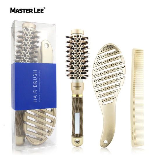Masterlee Hot sale Golden Plastic bristle boar comb detangler hair brush set